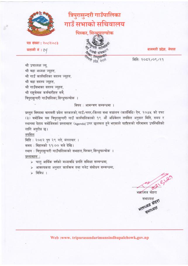 गाँउ सभाको १९ औं अधिवेशनमा उपस्थिति सम्बन्धमा ।