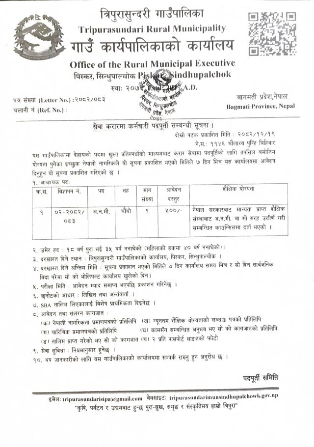 सेवा करारमा कर्मचारी पदपूर्ति सम्बन्धी सूचना ।