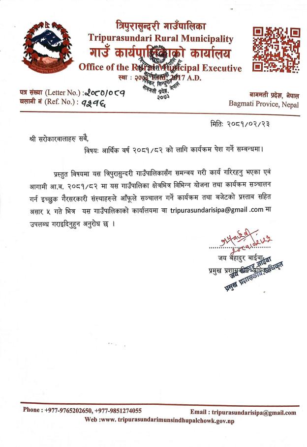 » आर्थिक वर्ष २०८१/०८२ को लागि कार्यक्रम प्रस्ताव पेश गर्ने सम्बन्धमा !