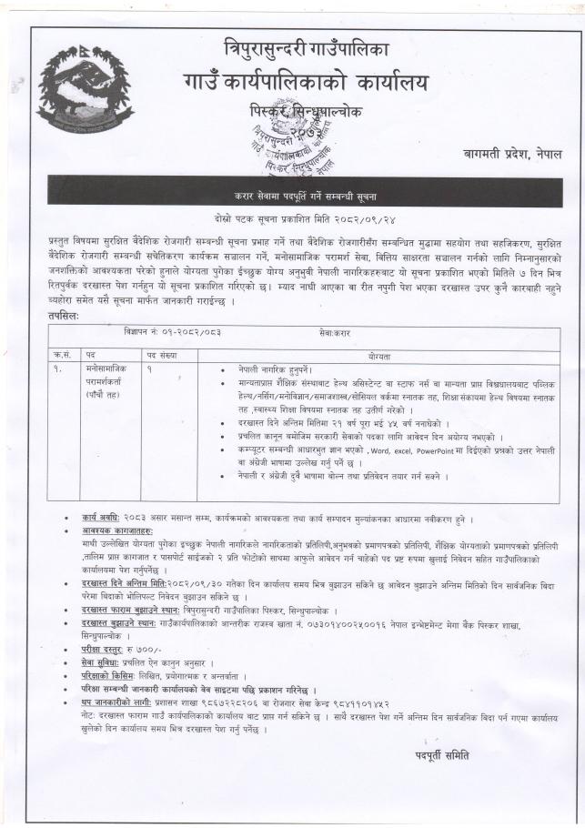 करार सेवामा पदपूर्ति गर्ने सम्बन्धी सूचना ।