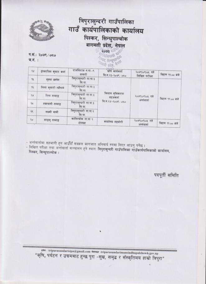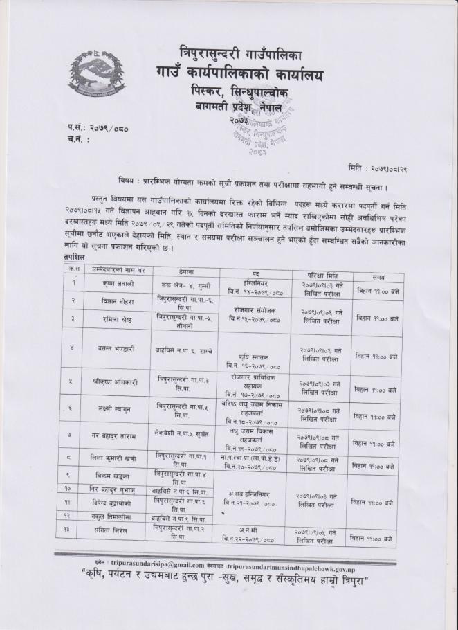 प्रारम्भिक योग्यता क्रमको सूची प्रकाशन तथा परीक्षामा सहभागी हुने सम्बन्धी सूचना