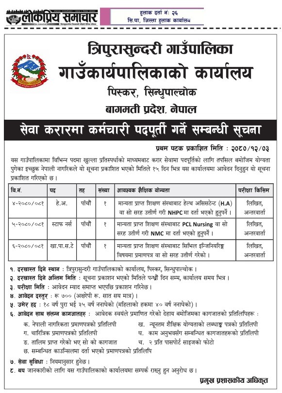 » सेवा करारमा कर्मचारी पदपूर्ती गर्ने सम्बन्धी सूचना - हे.अ, स्टाफ नर्स, खा.पा.स.टे