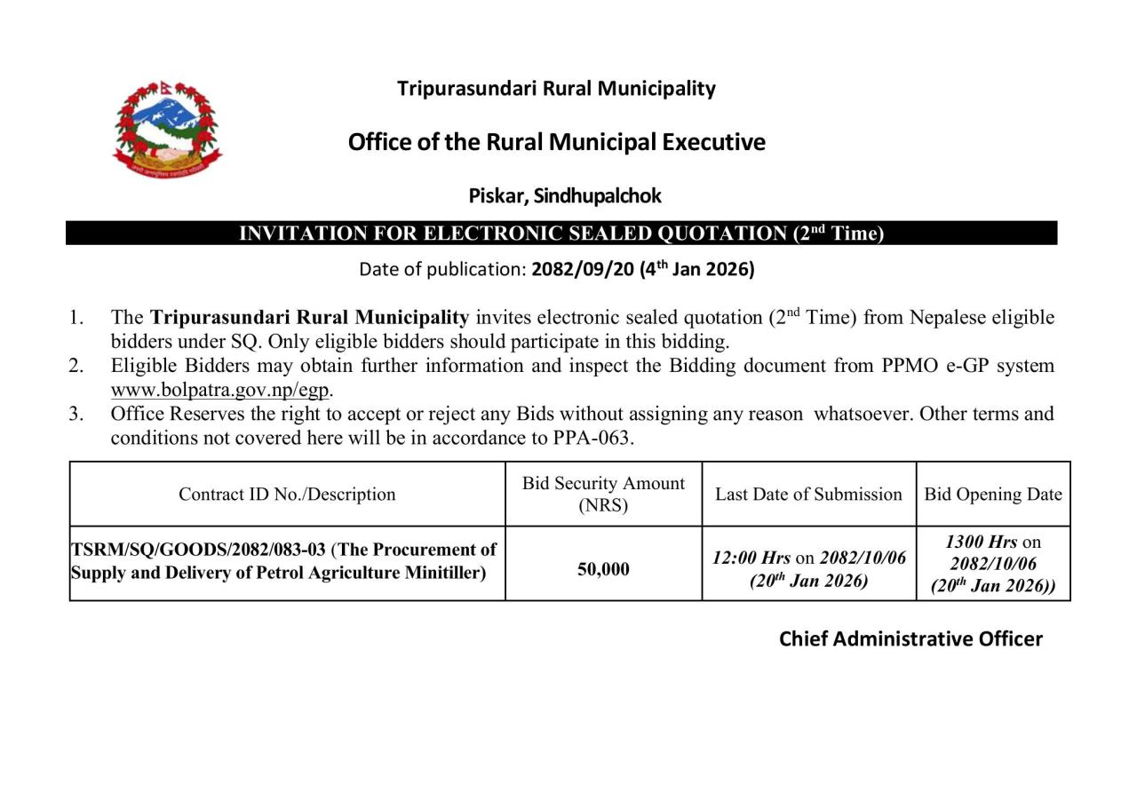 सार्वजनिक खरिद/बोलपत्र सूचना